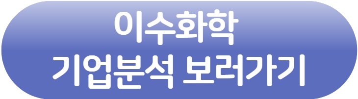 최근 들어와 그린바이오 분야로 까지 진출하며 사업을 확장하고 있으며 얼마 전 인적분할을 통해 이수스페셜티케미컬을 종속회사로 두고 정밀화학 사업과 전고체 배터리 소재 사업을 진행하게 되었습니다.