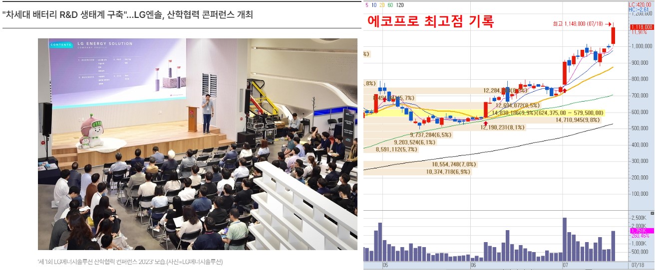 오늘 시장에서는 LG에너지솔루션 이방수 사장이 전고체, LFP 등 여러 배터리 연구에 집중하고 있다고 언급하며 차세대 전지 개발에 대한 기대감이 높아지고 있습니다.