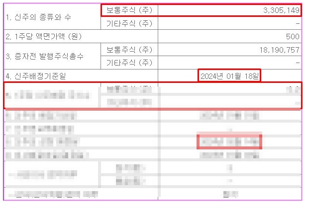 - 신주배정기준일: 2024년 1월 18일 (1월 16일 18:00 까지 주식 보유)