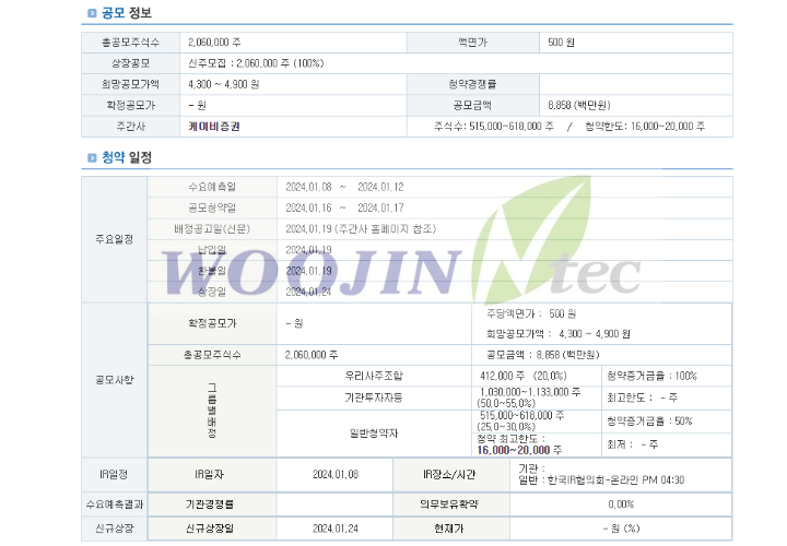 공모 청약일: 2024년 1월 16일 ~17일 (2일간)