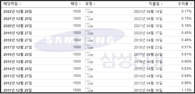 삼성SDI의 배당이력은 다음과 같습니다.