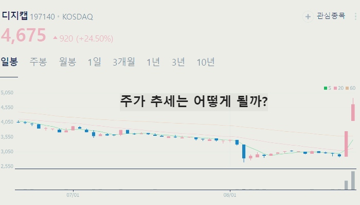 개인적으로 큰 상승이 기대되는 디지캡 주가는 2024년 8월 28일 기준 4670원입니다.