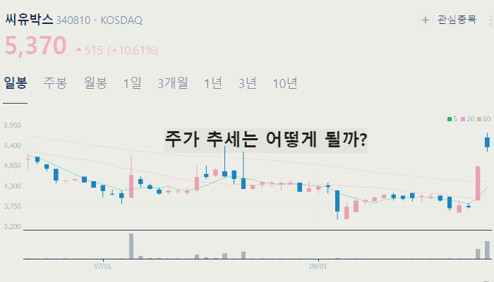 개인적으로 큰 상승이 기대되는 씨유박스 주가는 2024년 8월 28일 기준 5370원입니다.