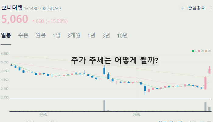 개인적으로 큰 상승이 기대되는 모니터랩 주가는 2024년 8월 28일 기준 5060원입니다.