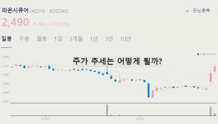 개인적으로 큰 상승이 기대되는 라온시큐어 주가는 2024년 8월 28일 기준 2490원입니다.