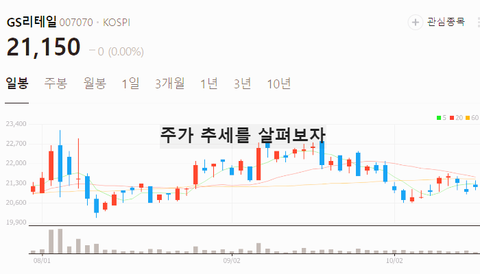 향후 주가 상승이 기대되는 GS리테일 주가는 (2024년 10월 18일) 기준 21150원입니다.