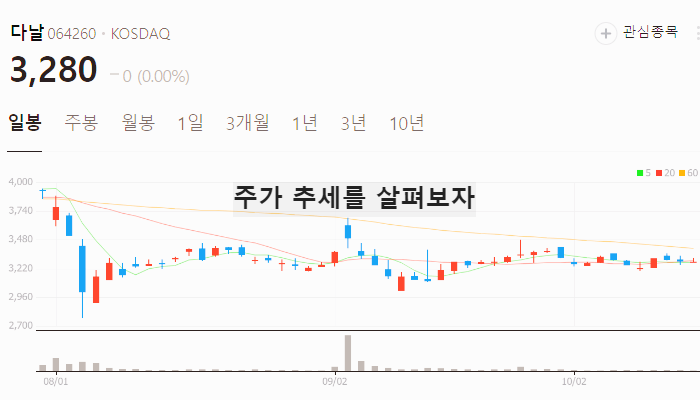 향후 주가 상승이 기대되는 다날 주가는 (2024년 10월 18일) 기준 3280원입니다.