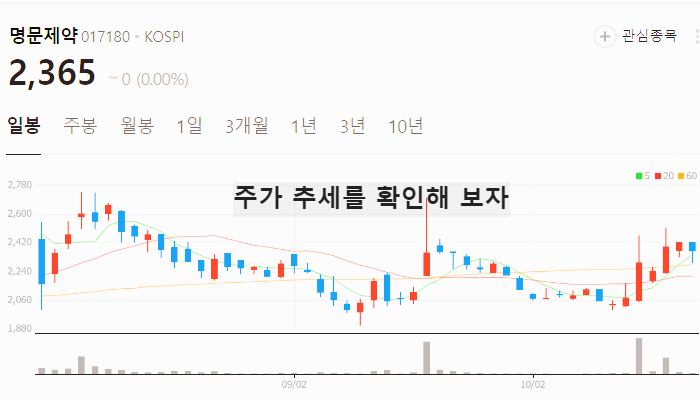 아래에서 그 동안 명문제약 주가 추세가 어떻게 흘러갔는지 확인해보세요.