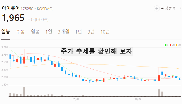 아래에서 그 동안 아이큐어 주가 추세가 어떻게 흘러갔는지 확인해보세요.