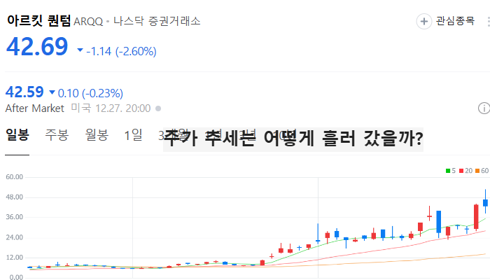 아래에서 그 동안 아르킷 퀀텀 주가 및 실적이 어떻게 흘러갔는지 확인해보세요.
