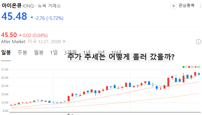 향후 주가 상승이 기대되는 아이온큐 주가는 2024년 12월 30일 기준 45.48달러입니다.