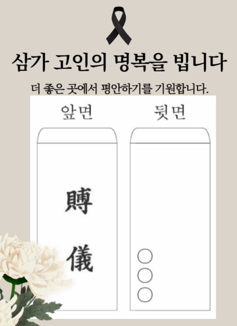 - 모친의 별세를 애도하오며 삼가 고인의 명복을 빕니다.