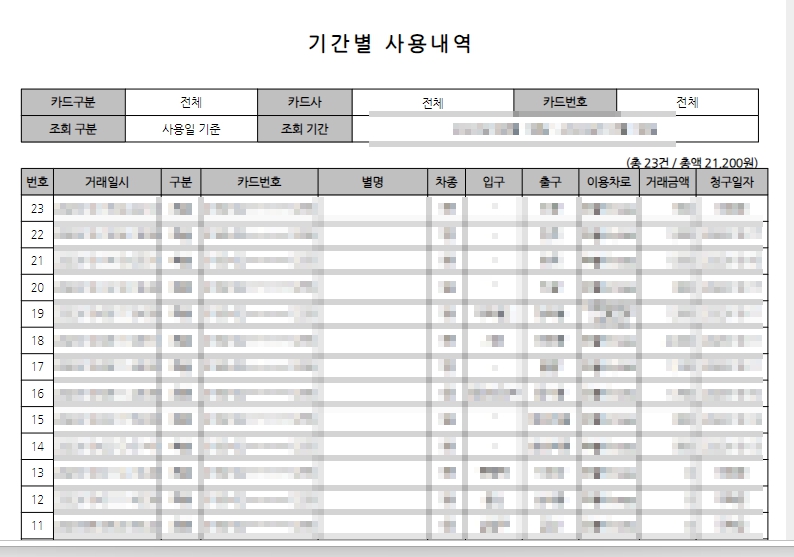 하이패스 사용내역 출력