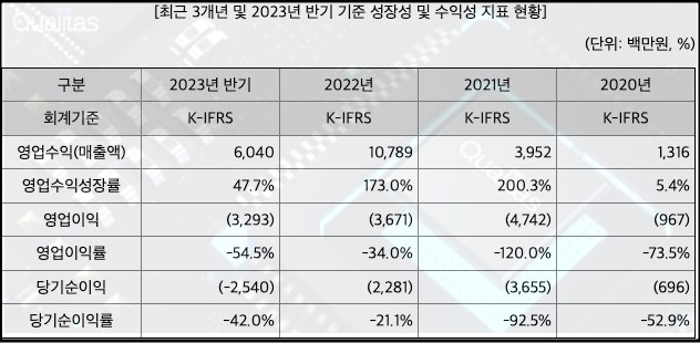 퀼리타스반도체는 설립 이후 반도체 기술관련 연구개발 인력을 다수 채용하며 연구개발비가 증가한 부분이 실적에 많은 영향을 주었으며 결국 적자기업으로 일반적인 방법으로 상장하는 것이 아닌 기술특례상장으로 진행 하게됩니다.