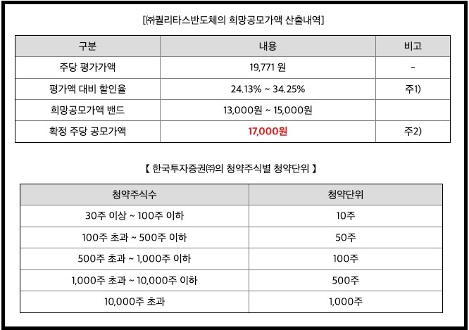 퀼리타스반도체 공모주 : 수요예측 증거금 공모가