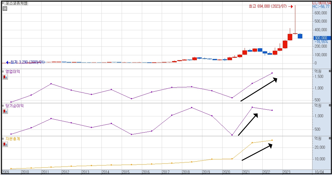 이와 함께 당기순이익 또한 2020년 부터 급격한 증가 추세에 있으므로 포스코퓨처엠 실적은 매우 안정적인 흐름을 보여주고 있는 주식이라 생각 됩니다.