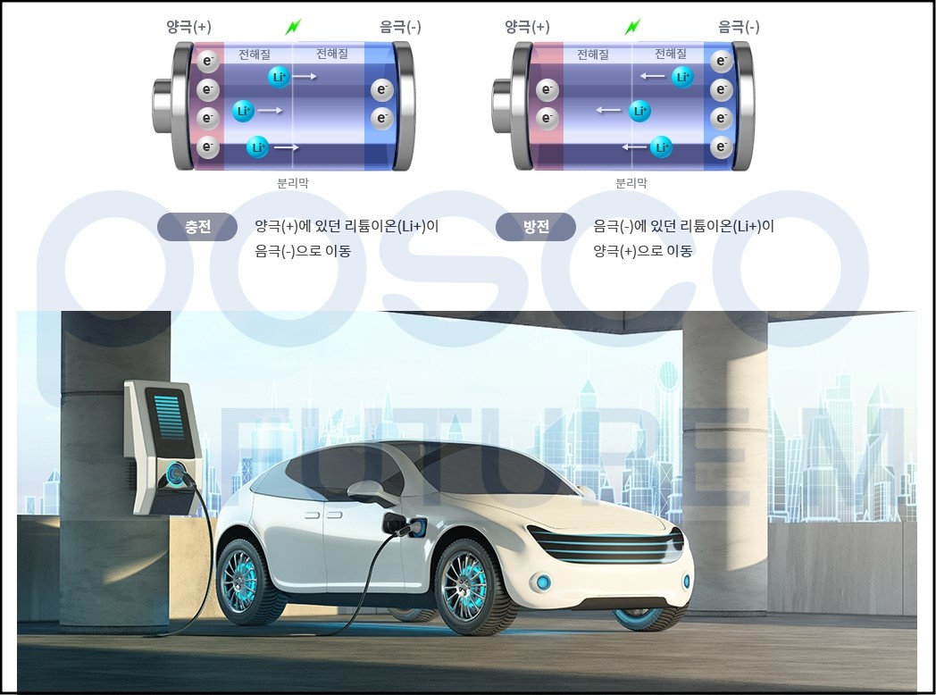 이차전지 소재에는 양극재 , 음극재 , 전해액 , 분리막 4대 요소로 이루어져 있는데 포스코그룹내 양극재 , 음극재 핵심 재료인 리튬과 니켈 전문 기업이 함께 있기에 이차전지 사업에 시너지 효과를 낼수 있습니다.