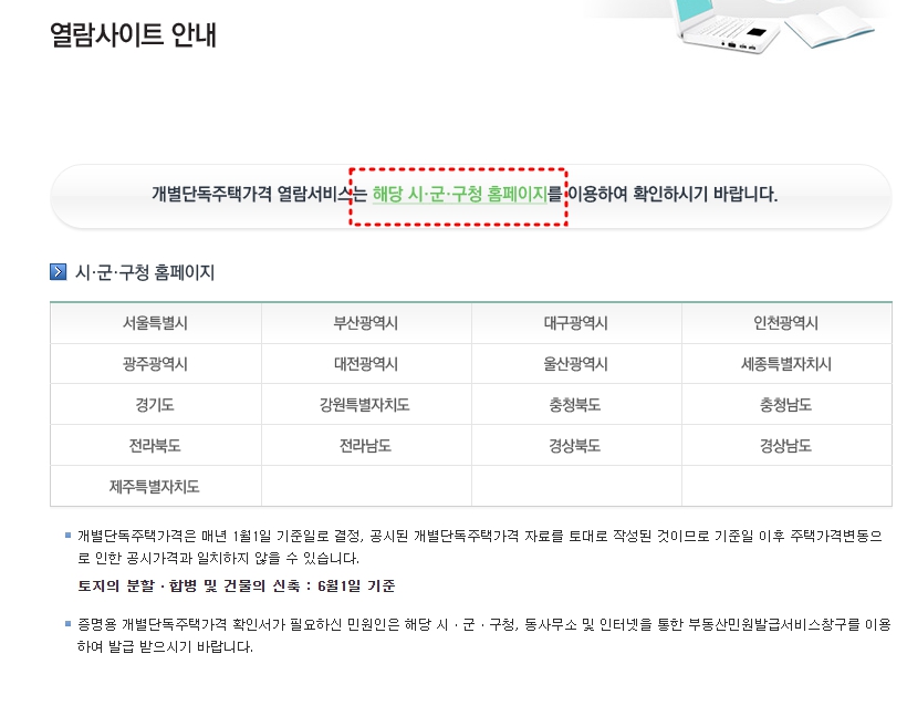 개별공시지가 조회 바로가기