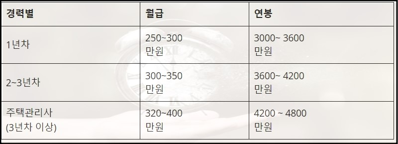 주택관리사 연봉을 경력으로 구분하면 다음과 같습니다.