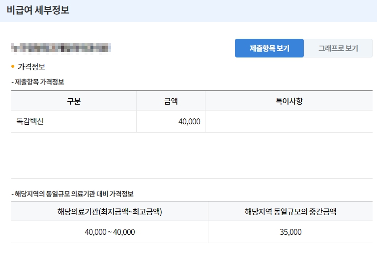 위 3곳 중 한 곳 병원의 세부를 눌러보니 접종가격이 바로 확인됩니다. 이렇게 검색하시면 조금이라도 비용을 절약하실 수 있을 거예요.