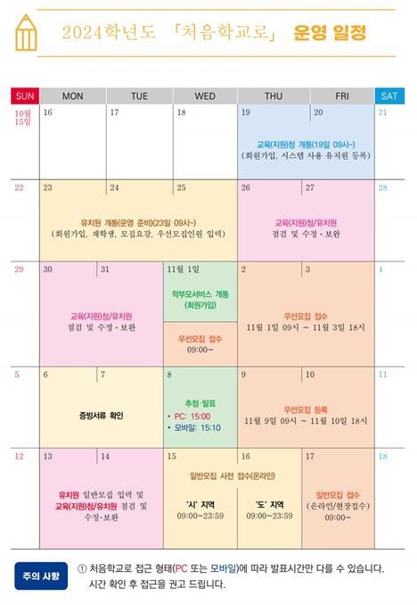 처음학교로 2024년 접수는 11월1일 수요일 오전9시 오픈합니다. 접속 후 회원가입 우선모집 지원을 선택하시면 됩니다.