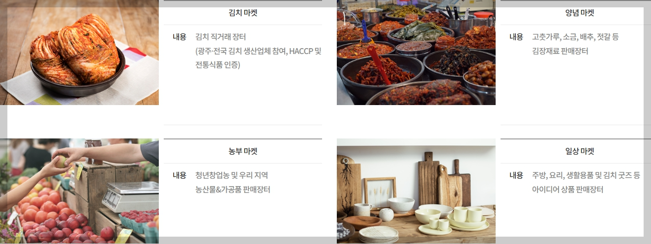 품질 좋은 김치를 비롯한 농산물, 양념, 식자재, 생활용품 등 김장에 필요한 모든 것이 소개되고 판매되는 올인원 김치마켓입니다.