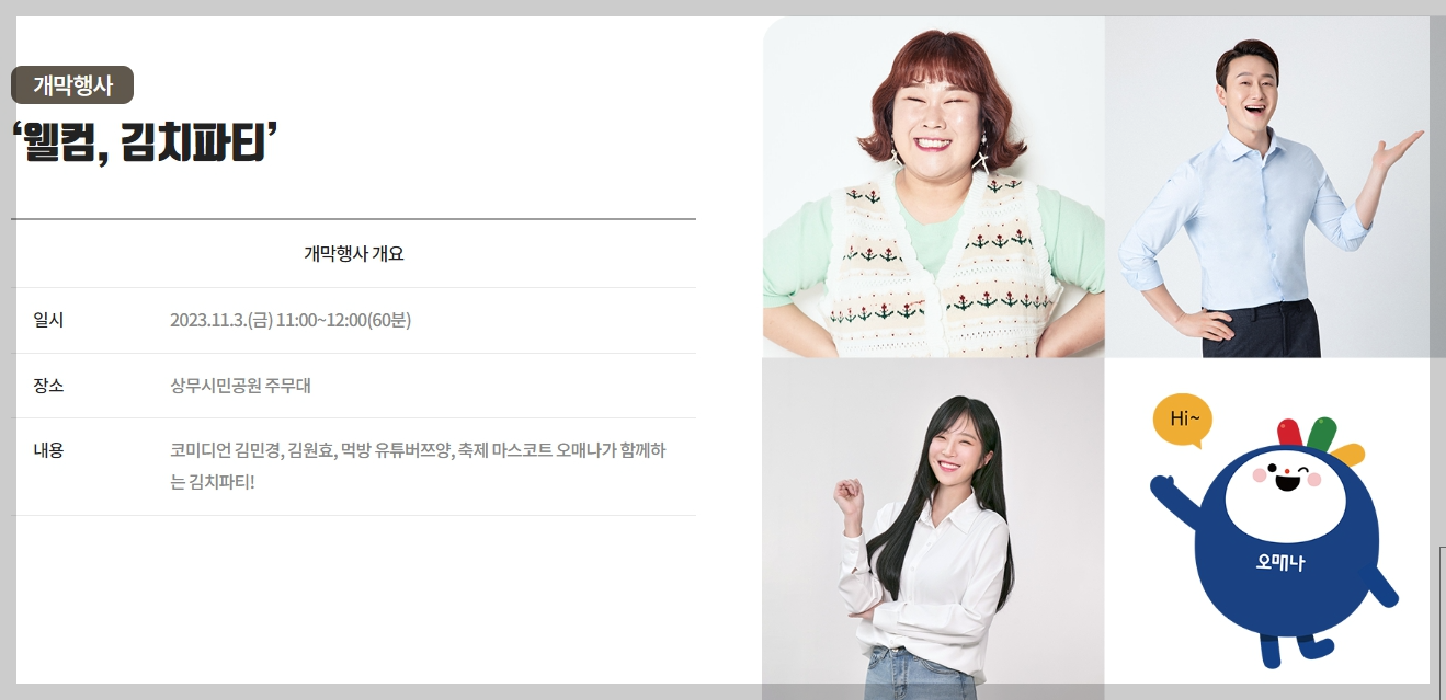 광주김치축제의 대표행사를 확인해보세요.